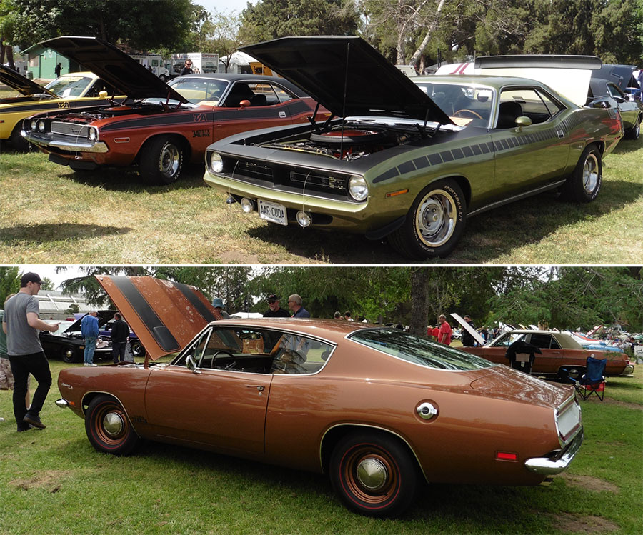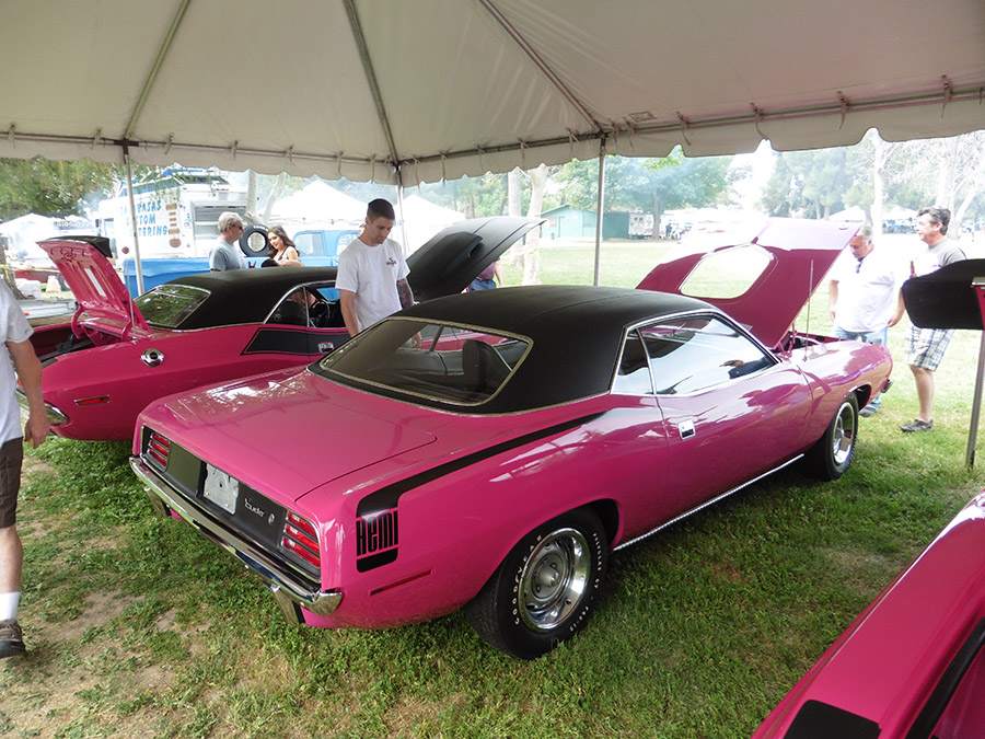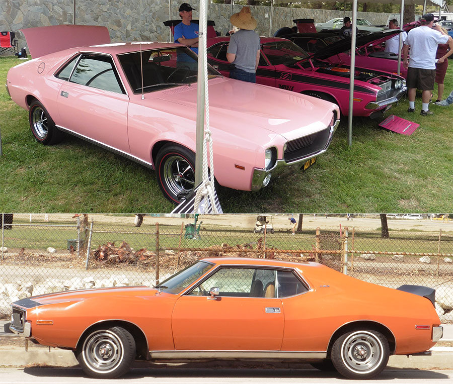Here, In the Factory Pink special Class, they had 2 Panther Pink T/A's and a Hemi Cuda ! Oh Yeah' They also had the World Famous Playmate AMX ! And there was Javelin that was parked across the street from the show. so I'm going with Ten AMC's.