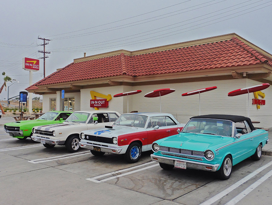 Hobie's 69' AMX, Robert's 70' AMX, Cameron's 69 AMX, and Walter's 66' Ambassador Convertible.
