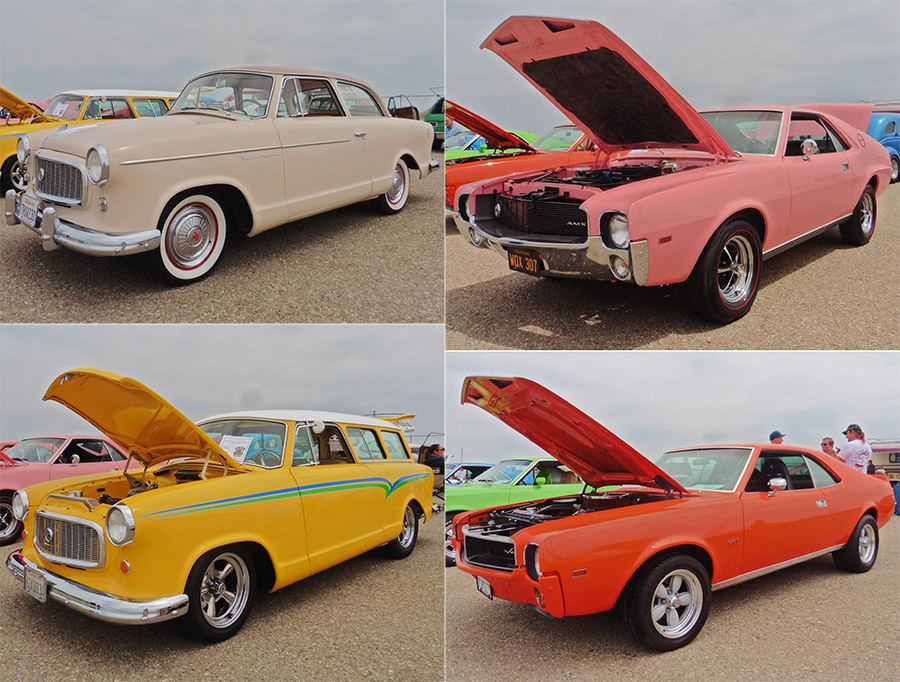Adam's 61' Ambassador, Mark's Award Winning 68' Playmate AMX, Tom's 60' Rambler Wagon, and Alan's 69' Javelin SST.