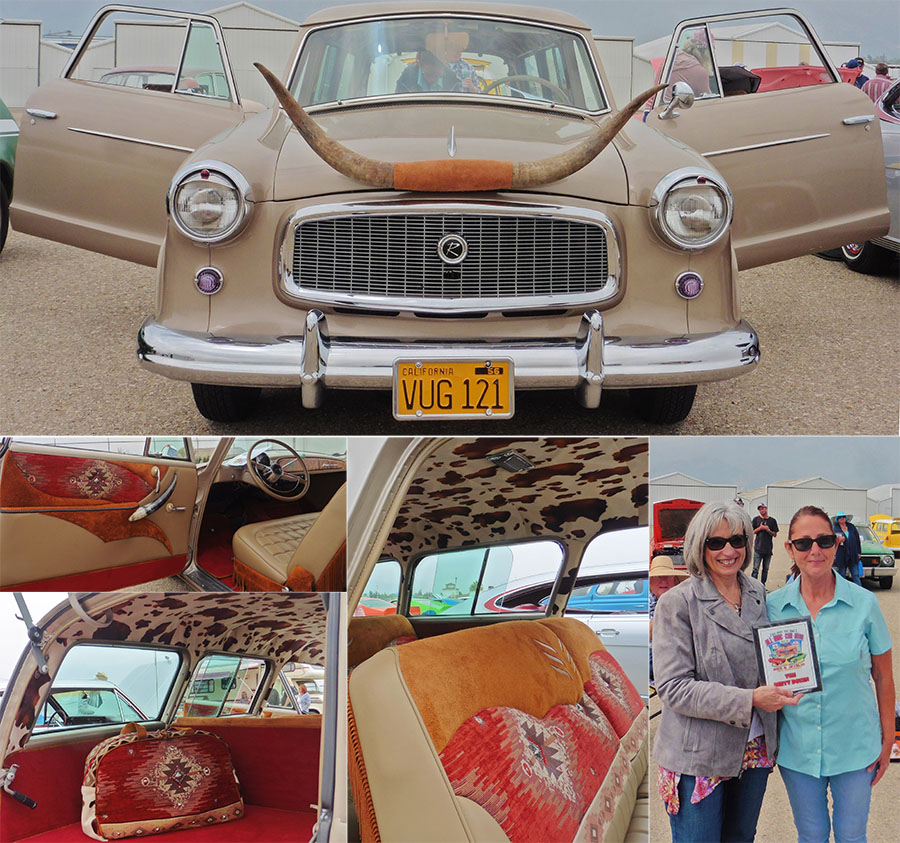 Ema's 60' American is BEAUtiful ! and her Husband did her Interior to match the bag ! But don't worry, the Horn on the grill is held on by magnet, Certainly She got a Trophy !