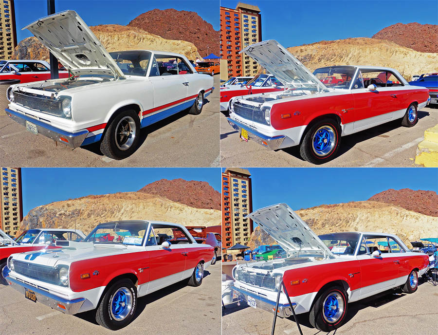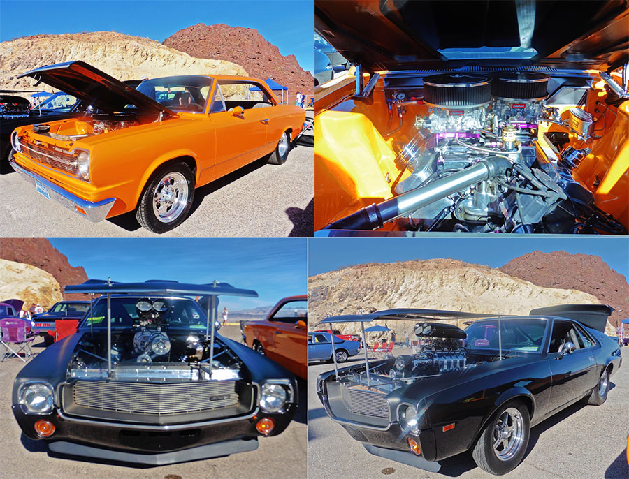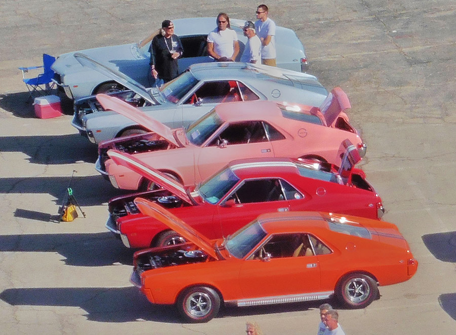 Shelly's Red 69 is a survivor, John is finishing up restoring it to road worthy again, still has the original paint, and they got it from the original owner, where it had been stored for 20 some years ! Now the Pink AMX, well, everyone should now know it's the Real Deal ! Mark's been haul'n in trophies all over the place with the Playmate AMX ! and did here as well.