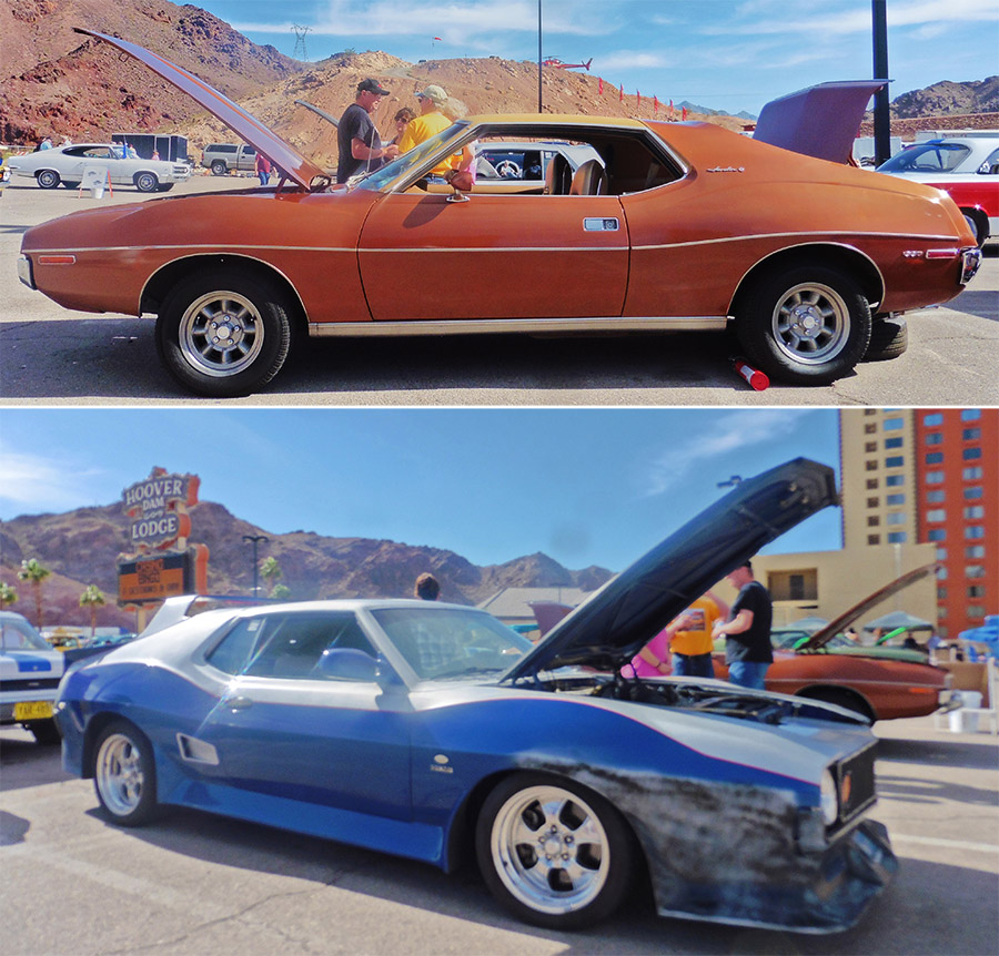 The three AMC's that came late in the day, and the 74 Javelin showing up after it was over, he bought it from the original owner "his Mother"!