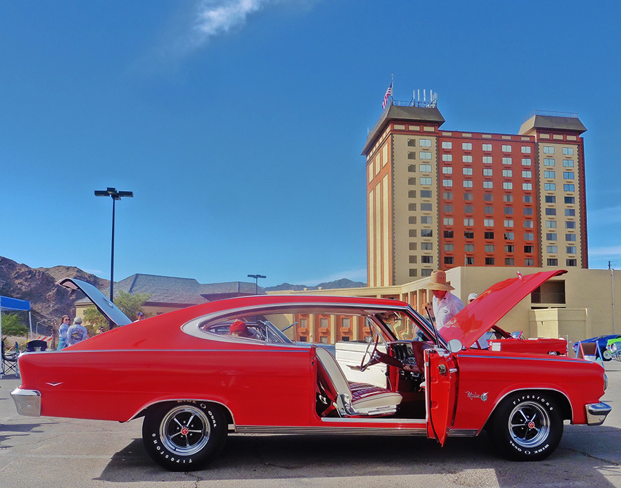 This is from my room window around lunch time, and a few cars are not here. We (SoCalAMX) had 10 cars registered here ! Richard's AMX didn't make it, but he did, and we include Mark Fletcher in our group, even though he's still a member of Cactus Cruisers (he live's in SoCal now).
